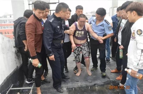 就在轻生男子被拉上来的时候,西关派出所民警也赶到了楼顶。轻生男子浑身发抖、情绪激动,为确保安全,民警将其带回派出所进一步询问。
